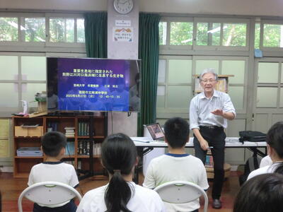 〇重要生息地に指定された「熊野江河口海浜域」について学ぶ「希少生物観測フィールドワーク」を実施しました。宮崎大学名誉教授三浦知之先生を講師に招き、生物や自然との関わりなどの講話を行ってもらいました。その後、熊野江川河口に移動して観測会を行いました。生徒は、身近な地域に貴重な生物が生息することを実感し、より南浦の自然の素晴らしさを感じたようでした。お礼に三浦先生を始め、来校された関係者の方々に、本校生徒作成のストラップをお渡しました。