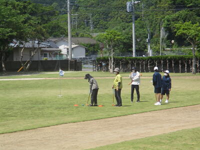 〇地域の方々招いて、小中合同グランドゴルフ大会を行いました。中学生が中心となり、計画準備をすすめ、当日は、参加者に声をかけながら進めていく姿は、さすがだなと思いました。表彰式では、手作りのメダルの授与式、閉会後は、参加賞の貝殻ストラップをお渡ししました。参加者から「中学生はとてもいいですね。交流も深められて私たちもとてもうれしいです」と言われました。この地域の良さを再確認すると同時に、ふるさとを愛する心が随所に見える行事でした。