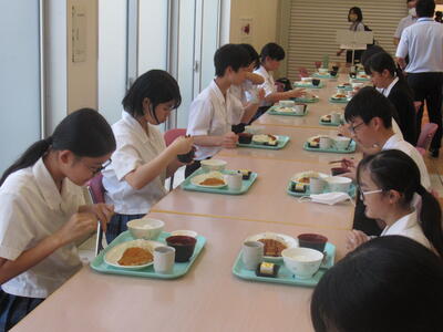 〇県北唯一の大学「九州保健福祉大学」を訪問しました。「薬学科」「臨床福祉学科」の2グループ、「生命医科学」は全体と、講義を受講し、学食の体験も行いました。生徒は真剣に講義を受け、学食(チキンカツ定食)体験で大学の雰囲気も感じたようでした。引率の先生方も昔を思い出したようです。この訪問で生徒は、職業選択の視野を広げられたと思います。また、延岡の歴史や偉人の功績を知ることで、地元の素晴らしさを再認識し、ふるさとを愛する心が育ったように思われます。説明をされた係員の方が「大変礼儀正しく、しっかり説明を聞く態度はとてもいいですね」とお褒めの言葉を頂きました。