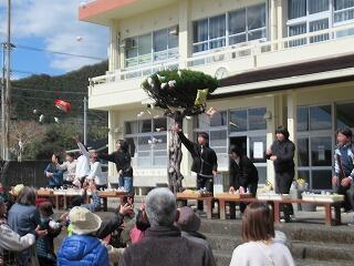 〇熊野江小学校・南浦中学校PTA主催による「卒業を祝う餅つき・餅まき」を行いました。前日より餅米の準備や、当日大勢の保護者で準備をしていただきました。ありがとうございました。児童・生徒は、これまでの感謝の気持ちを込めて、餅つきや、ついた餅を形良く丸めていました。餅まきでは、卒業生がこれまでの感謝の気持ちや、今後の目標など全員が発表し、地域の皆様も参加するなか、餅や準備されたお菓子を楽しそうにまきました。児童・生徒、保護者、地域の方に思い出に残る行事になったと思います。