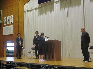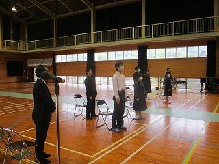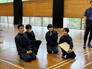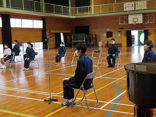 〇まず、延岡市民バドミントン大会ダブルス優勝と第62回県北少年少女スポーツ大会バドミントン競技大会ダブルス優勝の表彰を行いました。次に行われる、延岡地区総合体育大会への大きな目標になりました。その後校長先生が講話ではなく、小中・地区運動会を題材に「学び合い・支え合い・高め合う」について考えるワークショップを行いました。いつもと違う内容で生徒は驚いた様子でしたが、意欲的に取り組んでいました。集会後生徒が「とても楽しく取り組めて、またこのような集会があればいいな」と感想を述べてくれました。