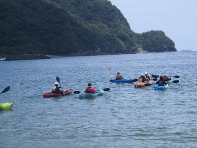 〇ひむか感動体験ワールドの方3名を講師招き、「シーカヤック体験学習」を熊野江小学校と合同で実施しました。2.3年生は昨年度も実施しましたので、準備からシーカヤックの乗り方も上手に出来ていました。1年生は初めての体験でしたが、少しずつ上手に乗りこなすことができました。この体験で、熊野江海岸の美しさや地域の素晴らしさを改めて感じたようです。閉会式で講師の方から「この地域の自然はと ても素晴らしいです。しかし、美しい自然の中には危険もあります。人間は自然と調和して行くことが大切です。将来にわたってこの体験と、美しい自然を忘れないようにしてください。」と話されたことが心に響きました。
