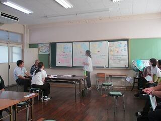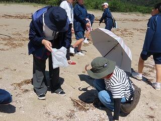 〇貝殻ストラップ作成のために、宮崎大学と東京学芸大学の2名(インターシップ)と延岡市の婦人会の方も参加して熊野江海岸へ貝殻拾いに行きました。その後、実際に貝殻ストラップを作成しました。生徒は、作業を行いながら参加した方と、いろいろな話をしたようで、有意義な時間となりました。