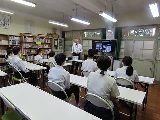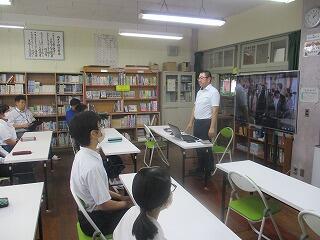 〇本校職員による「平和学習(広島原爆についての講話)」を行いました。TSSからの提供資料映像を見ながら平和について考えました。11月には修学旅行で、「広島原爆ドーム」を訪れます。今日の学習をもとに、多くのことを学び考えてくれることでしょう。