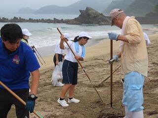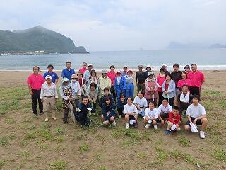 〇熊野江小・南浦中・地区合同で、熊野江海岸清掃を行いました。小雨の中での開始でしたが、徐々に天候が回復し、参加者全員で1時間程度の清掃活動でした。清掃後、生徒が「とても美しい熊野江海岸(海水浴場)に多くの方が訪れてもらいたい」と話してくれました。