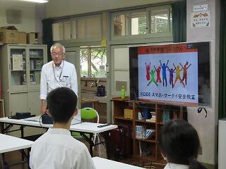 〇KDDIの方をお招きして「携帯・スマホ安全教室」を行いました。ルールやマナーを守って正しく利用するための具体的なポイントや、トラブルの際の対処法について学びました。また、ネット依存にも気をつけて生活することも大切なことであると、しっかり理解したようでした。