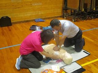 〇延岡市消防署警防課警防係の方を講師に招き、熊野江小学校・南浦中学校合同で、「親子救急法」を行いました。心肺蘇生やAEDの使用方法を細かく確認しながらの研修でした。研修で学んだことを時折思い出し、忘れないようにしていきたいと思います。