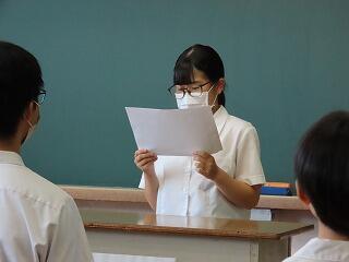 〇第2学期が始まりました。始業式では生徒代表が2学期に向行けての抱負を発表しました。また、具体的な取組も述べられ、学校行事等が多く計画されている2学期ですが、全校生徒がしっかり取り組んでいくことでしょう。最後に2学期から新しいALTのニコラス・ジャーニー先生の自己紹介がありました。これから生徒は、授業や休み時間にたくさん交流をしてもらいたいと思います。