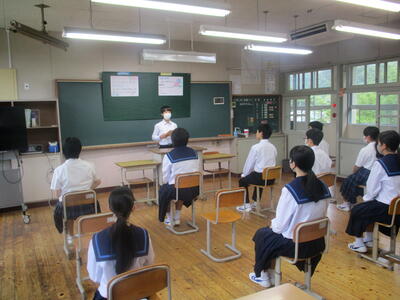 6月1日(生徒集会) 投稿日時 : 2023/06/02 学校管理者 〇今月の各専門委員会活動の共有化を図り、学校全体で取り組むことの確認を行いました。学習委員会では、「テストに向けて振り返ろう」生活保体委員会は、「歯と口の健康に気をつけよう」の目標に、具体的な取組が示されました。その後、生徒会が人選し、月毎に張った生徒を表彰する「MOM(Man of the minamiuru)」の表彰がありました。表彰を受けた生徒は「みんなのおかげです。今後も頑張ります」とお礼の言葉を述べていました。大変素晴らしい言葉だと感心しました。 Tweet
