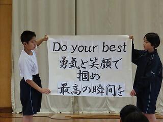 運動会結団式(令和6年4月16日) 投稿日時 : 2024/05/31 学校管理者 〇5月19日に実施される、小中・地区合同運動会に向けて結団式を行いました。今年のスローガン【Do yur best~勇気と笑顔で掴め、最高の瞬間を~】の発表後、団長による決意表明、団色決定ゲーム、各団の応援練習などが行われました。結団式の様子から、今年も昨年に引き続き思い出に残る運動会になる予感を感じました。 Tweet