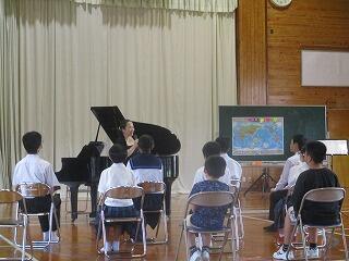 〇ピアノ奏者、県立芸術劇場のスタッフ、ピアノ調律師の方を迎えて鑑賞教室を小中合同で行いました。ピアノの仕組みや、有名な作曲家の曲目、各国の音楽、アンコールではリクエスト曲の演奏もあり、音楽の素晴らしさが心に残る鑑賞教室でした。