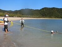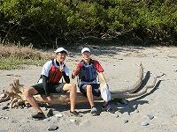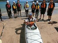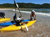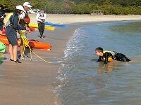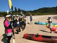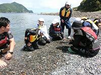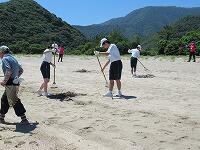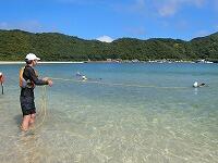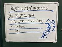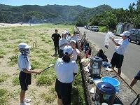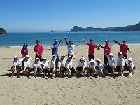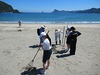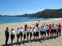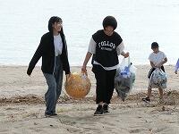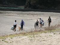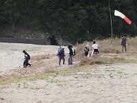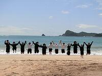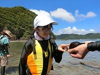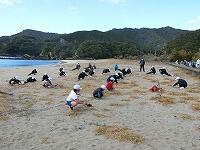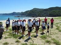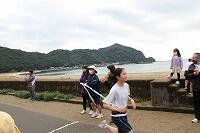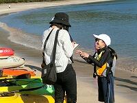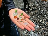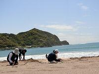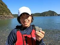 レクリエーションが終わったら、熊野江海岸での貝殻拾いです。この貝殻をストラップにします。