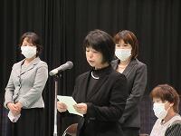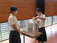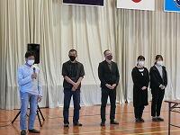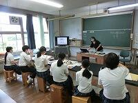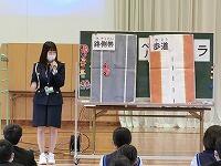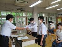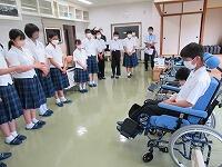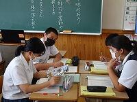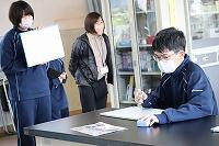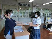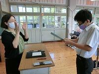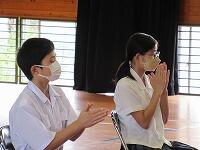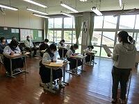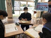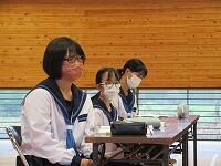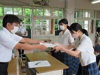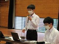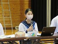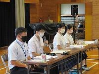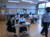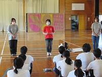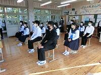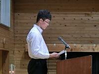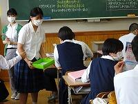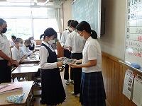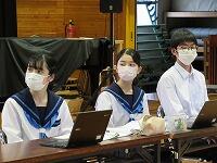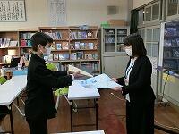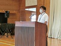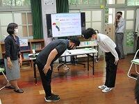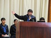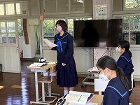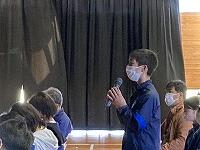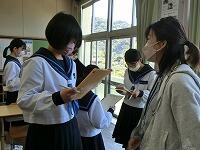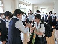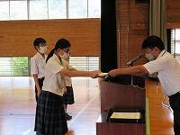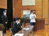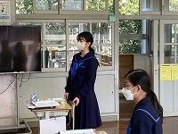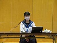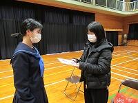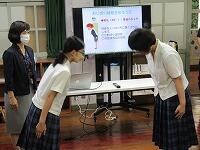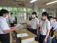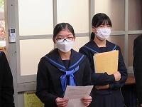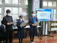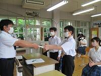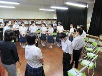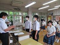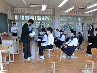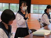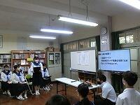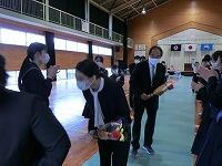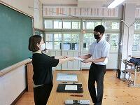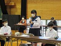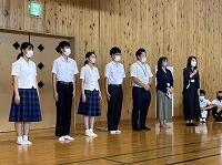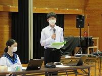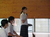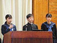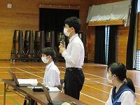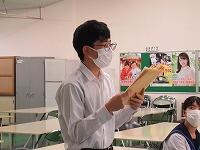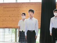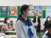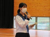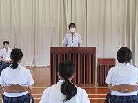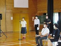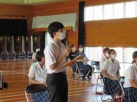 生徒会の代表が、南浦中のよいところを先生方に知っていただきたいと歓迎の言葉を贈りました。
