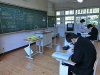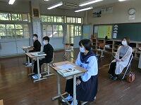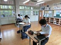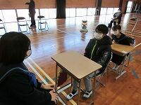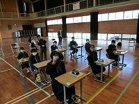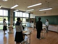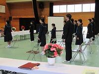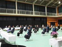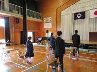 卒業式が始まります。コロナ対策で距離をとっての座席です。残念なことですが、リモートで参加する生徒がいました。