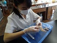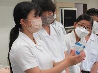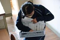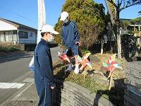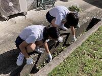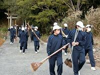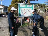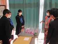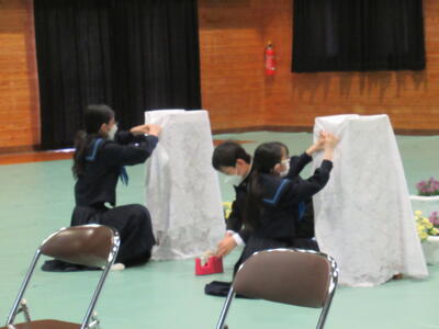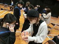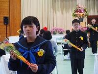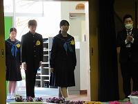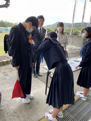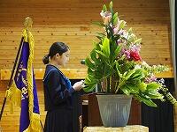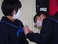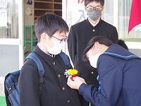 〇入学式の準備を在校生全員で心を込めて行いました。会場設営や大清掃も熱心に行い、準備に追われるなか、新入生の胸花を丁寧につけている姿は、優しさあふれる一面でした。