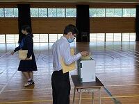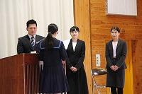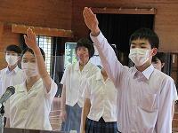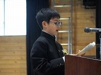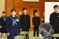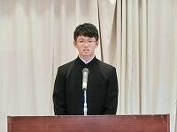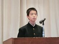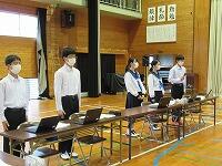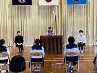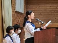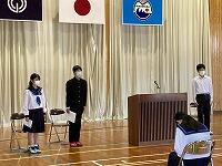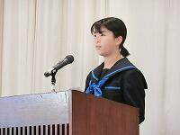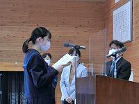 それに対し、新入生代表から「浦城小と熊野江小、違う環境でしたが、少人数だからこそ、一人一人の個性を尊重してカバーし合うことやみんなが同じ目標を目指し、全力を出し合ってやり遂げることの大切さを学んできました。南浦中学校には、温かい先生方と頼りになる先輩方がいらっしゃいます。不安なことがあった時はすぐに相談します。目標に向かって精一杯努力します。ご指導をよろしくお願いします。」と力強い誓いの言葉がありました。