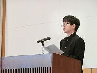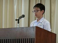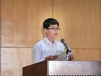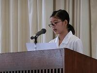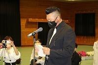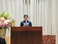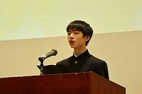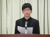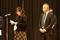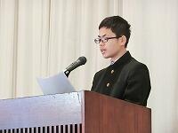 続いて、「誓いの言葉」を6人で唱えます。そして、テーマである「これまでの感謝と決意」を、一人一人が自分の座右の銘とともに、堂々と述べました。