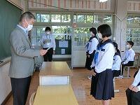 2月21日(火)、南浦中学校に延岡市 読谷山市長、澤野教育長が来校されました。