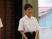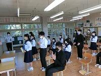 「これから前へ進むみなさんに大切にしてほしいことを2つ伝えます。1つ目は、一人で頑張りすぎないことです。一人で行動し自立することは大切ですが、協力することはそれ以上に大切だと思います。6人で協力して互いに支え合ってください。2つ目は周りへの感謝を忘れないことです。これはもうできていると思います。自分は一人ではないことを忘れず、楽しく充実した学校生活を送ってください。応援しています。」