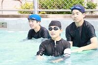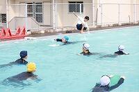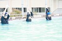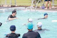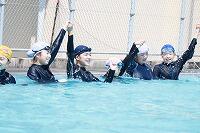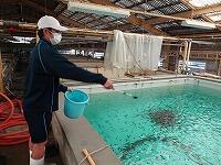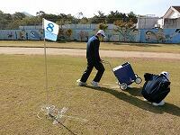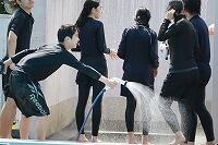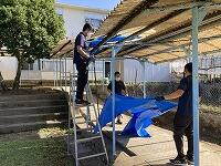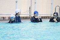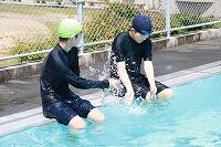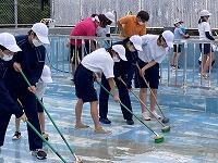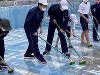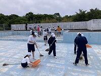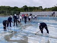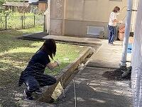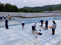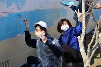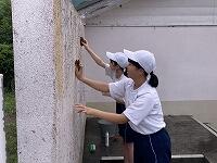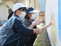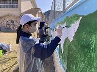 3月7日(火)、ぽかぽか陽気の中、美術の先生のご指導が始まりました。令和3~5年にかけて完成する「プール壁壁画」制作です。