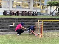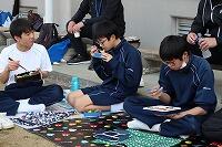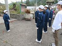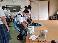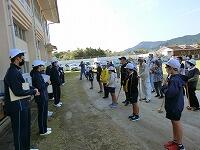 校長先生より、6年前の熊本地震の被害の話や避難三原則①すぐ逃げる②「ベスト」を尽くす③「もっと安全」を探すの再確認を受けました。最後にリュックの中身を確認し、訓練修了です。