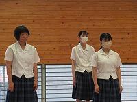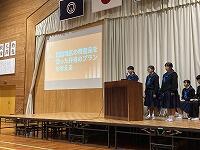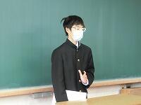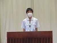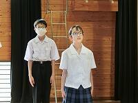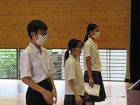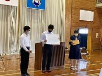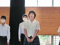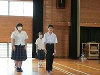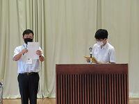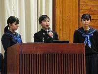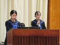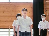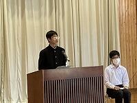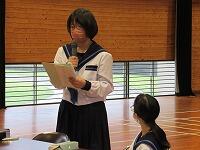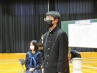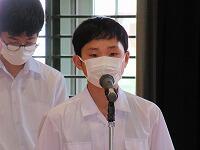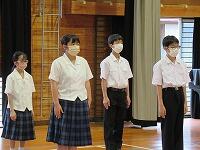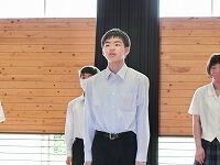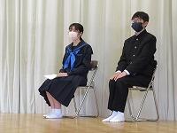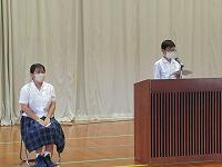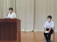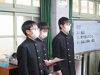 最年長として「南浦中の顔」になるために、色々な場面で前にでることを目標とし、南浦の伝統を守り、受け継ぐためにもできることをみつけて取り組むと決意の述べた3年生。頼もしい2人の発表でした。