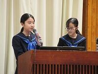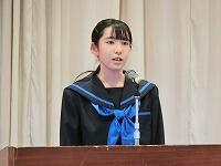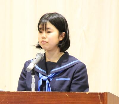 在校生歓迎の言葉は、「南浦中メンバーとともに何事にも全力で取り組み、楽しみましょう。時には苦しいこと、逃げ出したくなることも、いつか希望や自信に変わり、背中を押してくれるはずです。それでもあきらめそうになるときは、私たちを頼ってください。いつでも皆さんの味方となり、頼れる存在になりたいと思っています。」と頼もしいメッセージがありました。