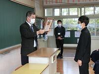 令和3年度1日も休まず登校した生徒への「皆勤賞」の表彰もありました。1年生205日、2年生208日、よく頑張りました。笑顔で受賞です!