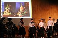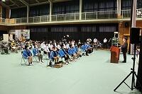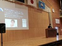 スライドショー上映のあと、校長先生のお話から始まりました。10年後、20年後は今存在していない職業に65%の子供が就くだろうという調査から、「みんなの未来はチャンスにあふれている。それぞれの夢の実現にむけて、今日の決意の言葉を胸に刻んでほしい。」とエールが送られました。