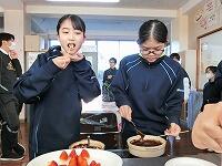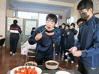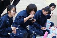 手作りのガトーショコラケーキを焼いてきた3年生。後輩達は「おいしい~!」とぱくぱくいただいていました。