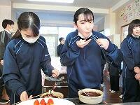 今日は、私たちの考えたお弁当を初めて、生徒以外にお披露目しました。試食してくださる皆さんをドキドキしながら拝見していました。