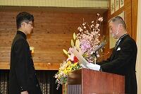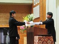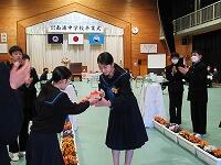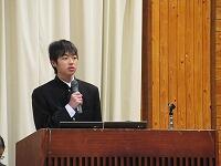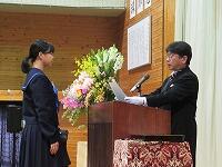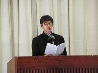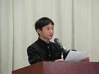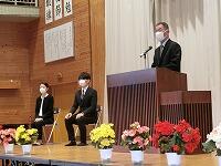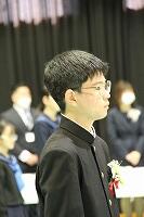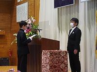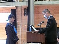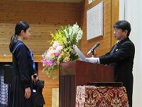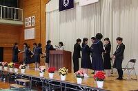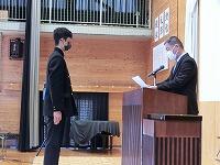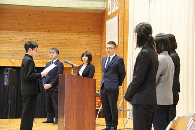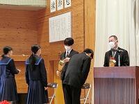 校長先生より、「自分が負けてならないのは、他人ではなく自分自身の弱さだ。4月から始まる新しい生活で自己実現をめざしてほしい。途中壁にぶち当たることは想像できるが、その壁を乗り越えてこそ、人としての深みが出てきます。自分自身で乗り越えることを期待します。」と祝辞がありました。