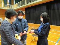 そして、お別れ会。1・2年生代表から感謝の言葉とお手紙贈呈。3年生からの言葉をもらって、送別行事は終了です。