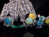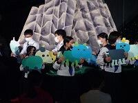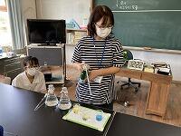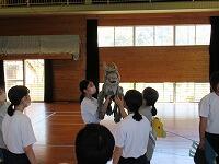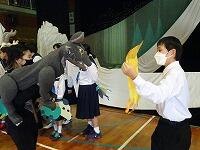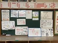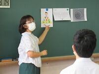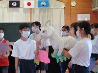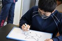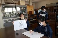 次は「お絵かき伝言ゲーム」。絵を使って言葉を伝えます。「トトロ」「ちびまる子ちゃん」「土偶」「みやざき犬ひーくん」「ミジンコ」・・・3年生は絵の才能もあり、次々と当てていきました。