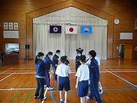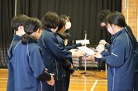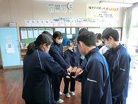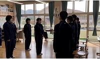 3月10日(金)、3年生を送る「送別行事」が行われました。1、2年生が3年生のために何ヶ月もかけて準備した企画です。1、2年生円陣組んで、気合いを入れました。