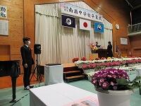 生徒代表のお礼の言葉では、一人一人の先生方との出来事が語られました。その語りを聞いて、南浦中は生徒と職員、お互いがお互いを必要として、信頼し合って、勉強や行事に取り組んだ学校だとしみじみ感じました。