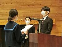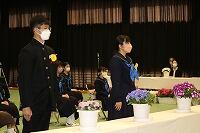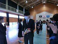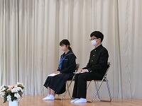 卒業生答辞では、支えになってくれた同級生へのたくさんの思いを自分の言葉で「尊敬して、仲間意識が高まり、この二人だからこそ一緒に頑張ってこられた最高の仲間」と、たくましく成長していく後輩たちへエールとともに感謝の言葉を、いつも生徒と近い関係でいてくれた先生方へ「いつも先生が見ていてくれる、こんなにも先生と楽しく過ごせる学校は南浦しかありません」と、お父さんお母さんへ「疲れやいらだちから反抗してごめんなさい、それでもすべて応援して支えてくれてありがとう。」と・・・そして