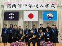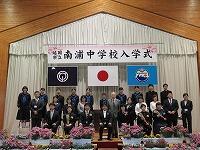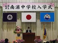 〇はじめての中学校生活に、不安と希望の中、4名の生徒が入学してきました。在校生代表歓迎の言葉では、「上級生がみんなを支えていきます。学校生活を楽しくするには、ほんの少し勇気を出すことです。不安や悩みを抱えることがあれば、一人で抱え込まず、いつでも私たちを頼ってください。これから共に学びこの南浦中学校での学校生活を楽しんでいきましょう。」と述べました。