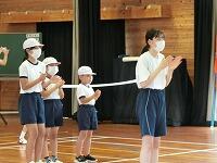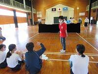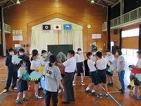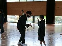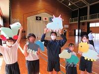 まずは、体育館で対面式です。新入生を拍手で迎え、1年生、2・3年生、職員の自己紹介を行いました。「ポケモンが好き」「ペットがいる」「小さい子と遊ぶのが好き」と1年生が話すと、2・3年生は、「楽しんで!」「歌を歌うこと、ダンスが好き」「給食は命をいただいているので全部食べる」「いつでもどこでもハイテンション!な僕です」などなど楽しい自己紹介をしてくれました。職員も負けじと「パインを早口で言える」や「ピヨピヨができる」特技を披露したり、「さつまいもが好き」「4歳から剣道をしている」などと紹介し、和気あいあいの時間となりました