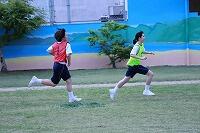 場所を運動場に移して、警察が赤ビブス、泥棒が黄ビブスで追いかけ、逃げ回り、全体力を消耗しました。狙われるのは職員、捕まるのも職員・・・