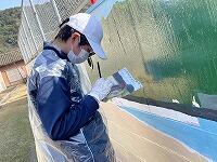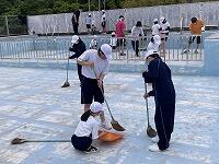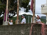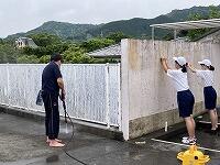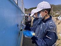 午後からは、報道関係の方が取材に来られました。15時、全体を塗り終わり、やり切った感満載の3年生です。