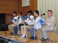 卒業式の歌。3年生のうしろから1、2年生が大きな声で歌っています。その姿が聞いている皆を感動させました。13人の歌声とは思えません。