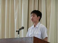4月7日(木)、新任式のあとに行われた始業式です。まずは2年生と3年生の代表による「1学期の抱負」から始まりました。
