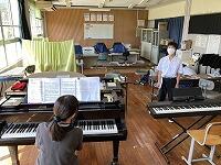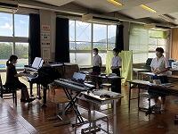 生徒からサプライズで歌のプレゼントがありました。いつ練習したのやら?音楽の先生が伴奏しています。
