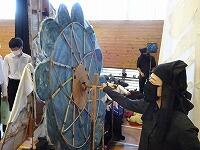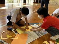 どんどん進んでいきます。「あ、はみ出しました。」「絵の具が垂れてます。」「遠くから見れば・・・」