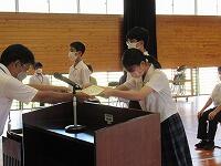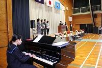 最後は校歌斉唱です。今回から生徒のピアノ伴奏です。伴奏者の緊張をよそに、とても気持ちよく歌えたみんなでした。