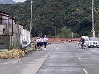 学校から空き地到着まで7分55秒。南海トラフ発生時 延岡市の被害予想は「震度7」「津波高の最大値14m」「津波到達時間の最短値17分」。訓練ではありますが、津波に遭わずに避難できました。