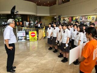 本番を明日に控え、生徒交流会に参加中の都城商業高校吹奏楽部の皆さん