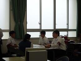 審査員の方が交流新聞を審査してくださっている間、生徒は交流会を行いました。各校ばらばらに4班に分かれて座り自分たちが作った新聞や他校の作った新聞について話をしました。初対面の生徒も多い中積極的な意見交換が行われ良い刺激になったようでした。