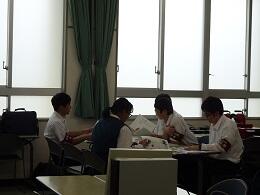 審査員の方が交流新聞を審査してくださっている間、生徒は交流会を行いました。各校ばらばらに4班に分かれて座り自分たちが作った新聞や他校の作った新聞について話をしました。初対面の生徒も多い中積極的な意見交換が行われ良い刺激になったようでした。